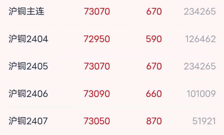 沪铜2404:73040元/吨,涨680元/吨